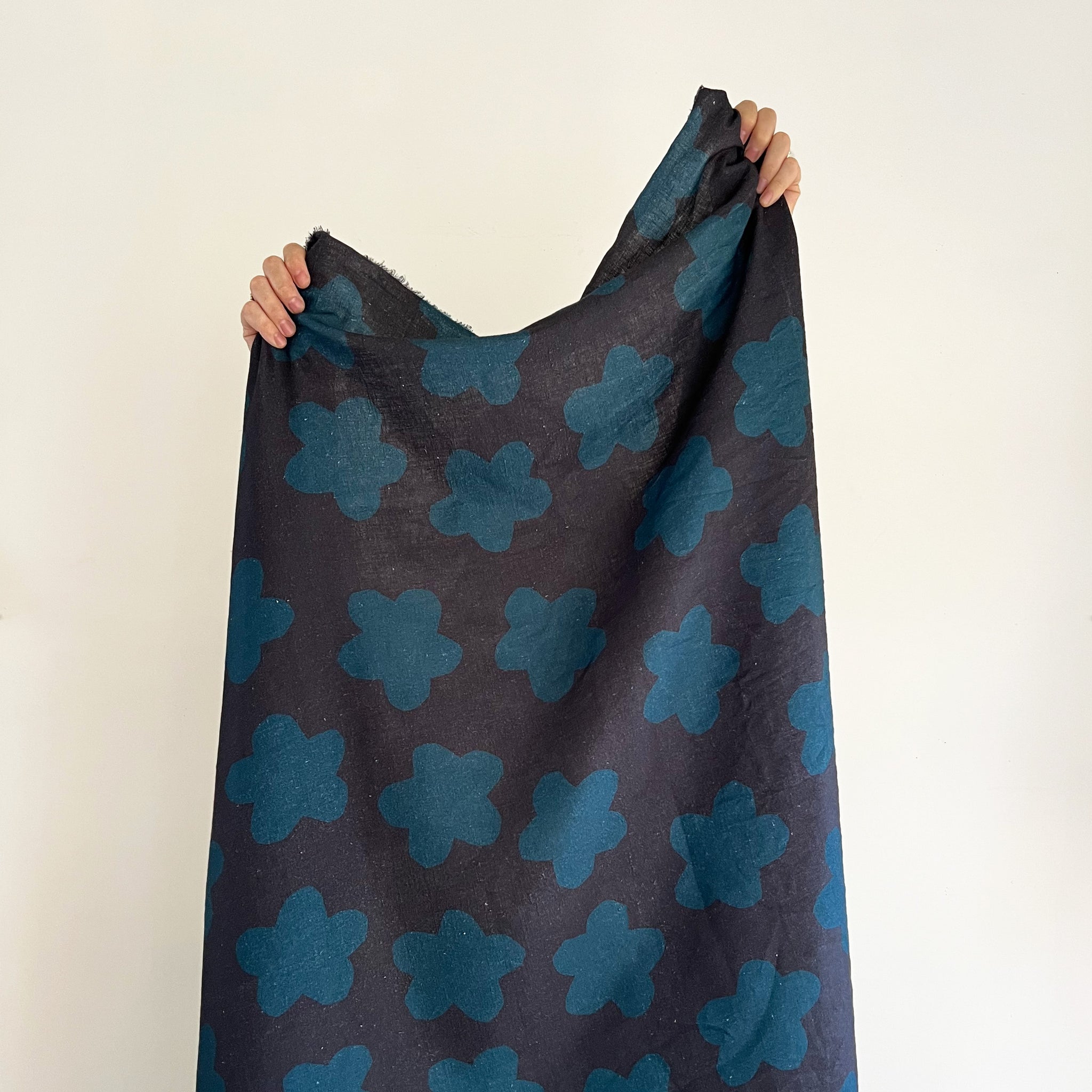 This 100% European Flax Linen features the Bold Blooms Print in Midnight and Ocean colour way.